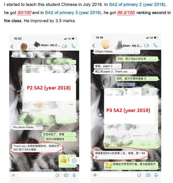 Among the secondary school students I teach, about 35% of the students can get good grades above A2 in the o-level exam, and most of them can get above B3. For students with poor Chinese foundations, they can also make great progress under my guidance.